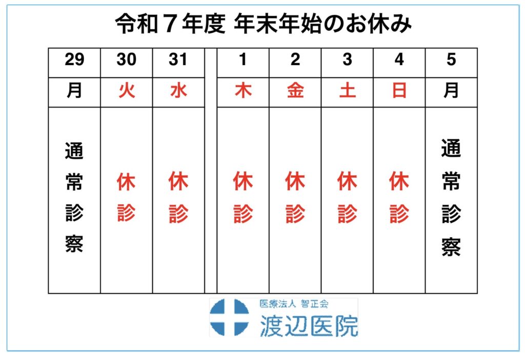 誠に勝手ながら、下記の日程にて年末年始の休診日とさせていただきます。